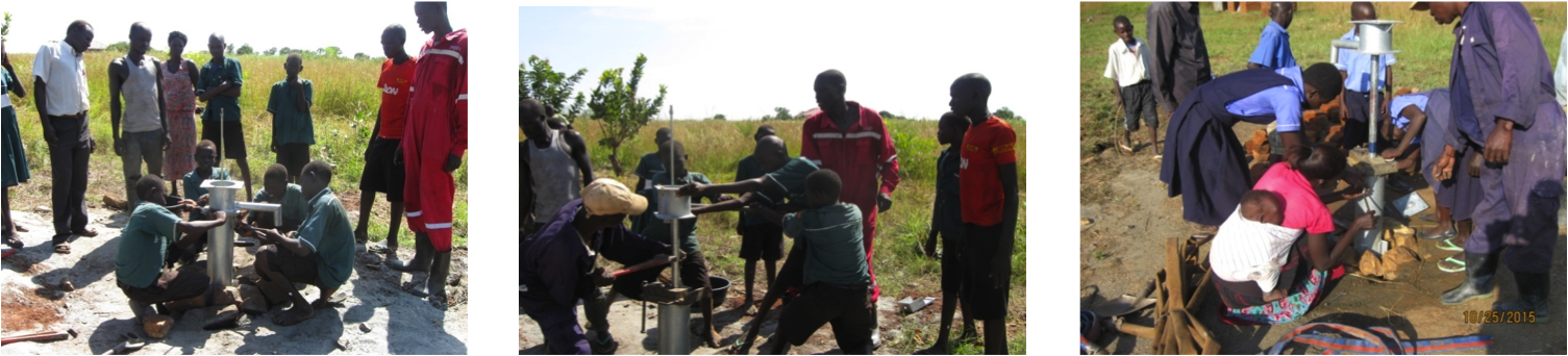 Schüler und Dorfbewohner lernen, wie die Handpumpen betrieben und repariert werden