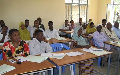 Deltakere på et av seminarene. De følger nøye med og noterer flittig. Her er det lærere fra to av skolene i Jijiga. Seminaret ble holdt på Wil Wal skole hvor en av spesial avdelingne er lokalisert. Representanter for skoleadministrasjonen i regionen er også representert.